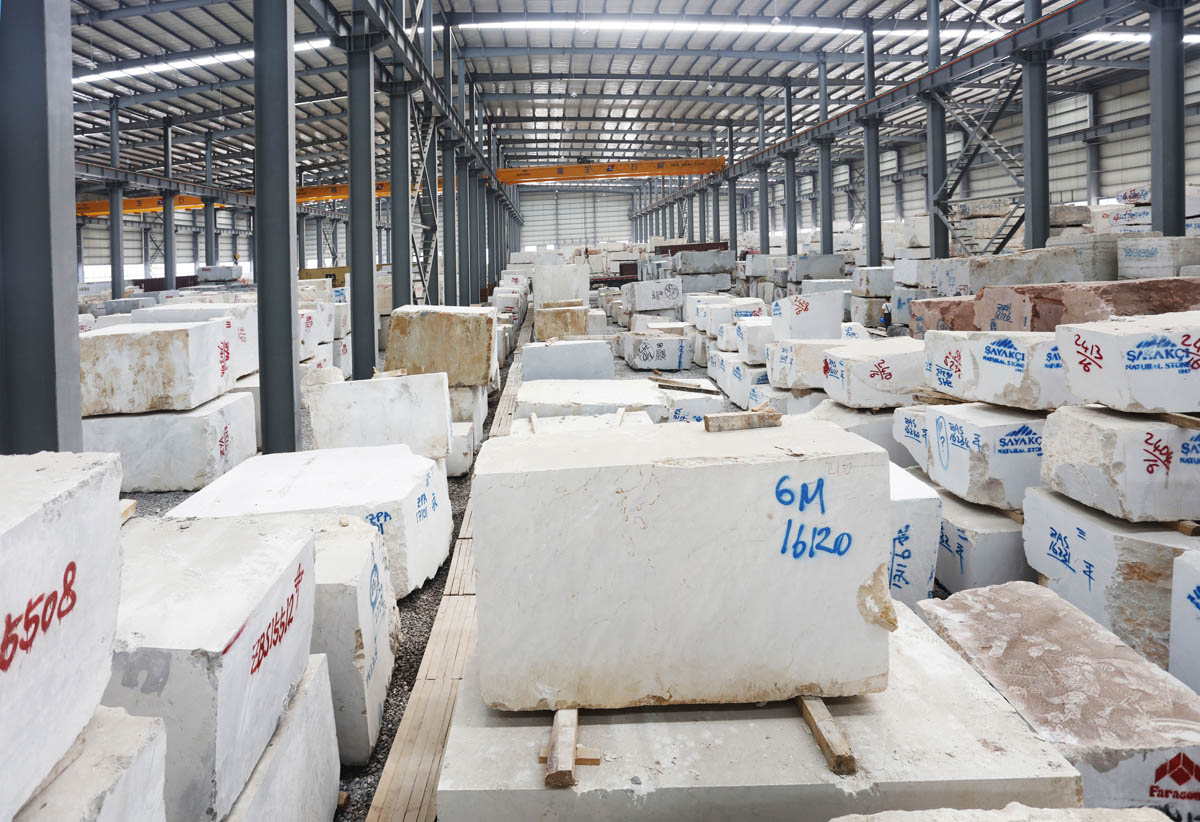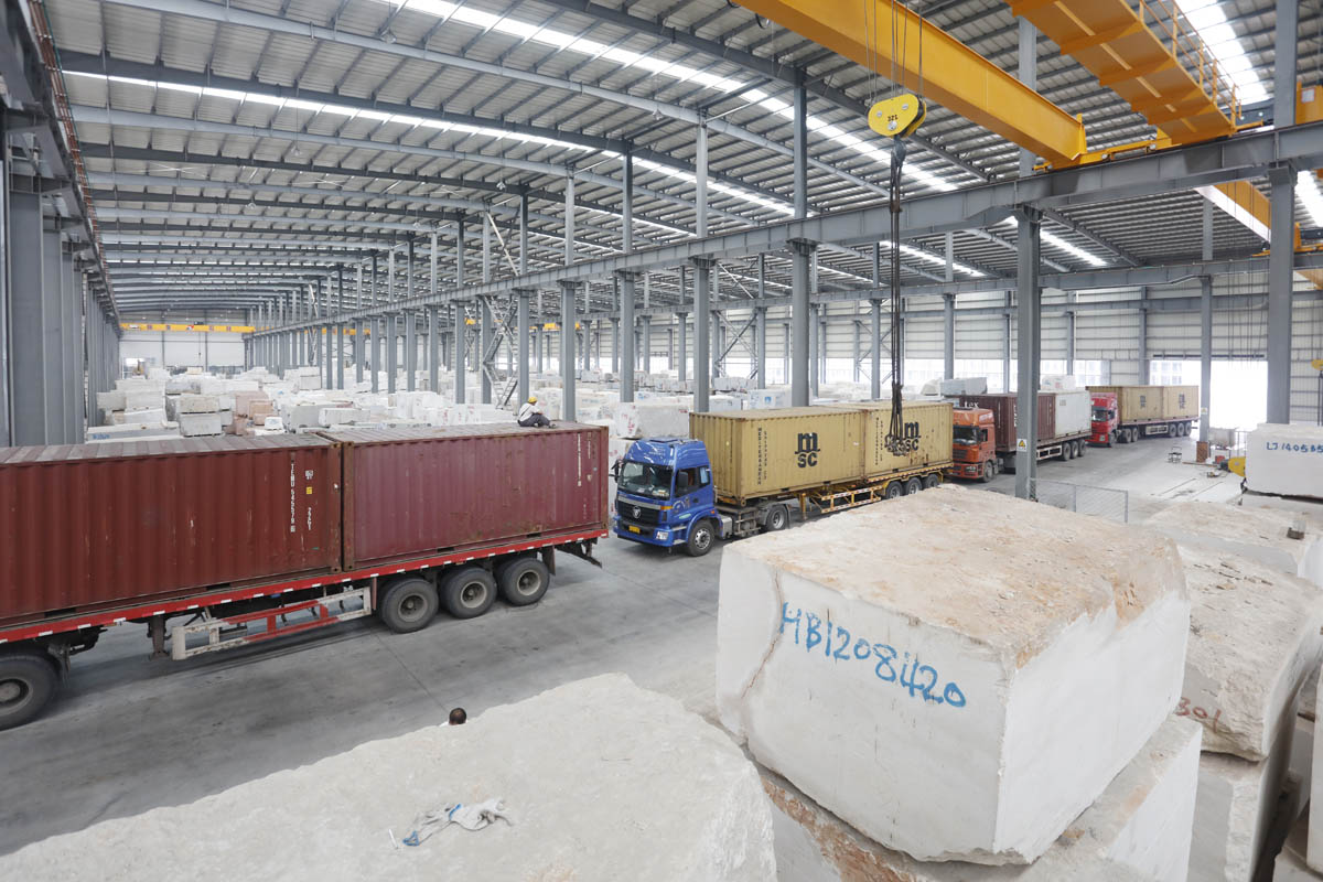 万搏(中国)采用世界先进的环保理念打造超大型室内荒料场。该荒料场实际面积为